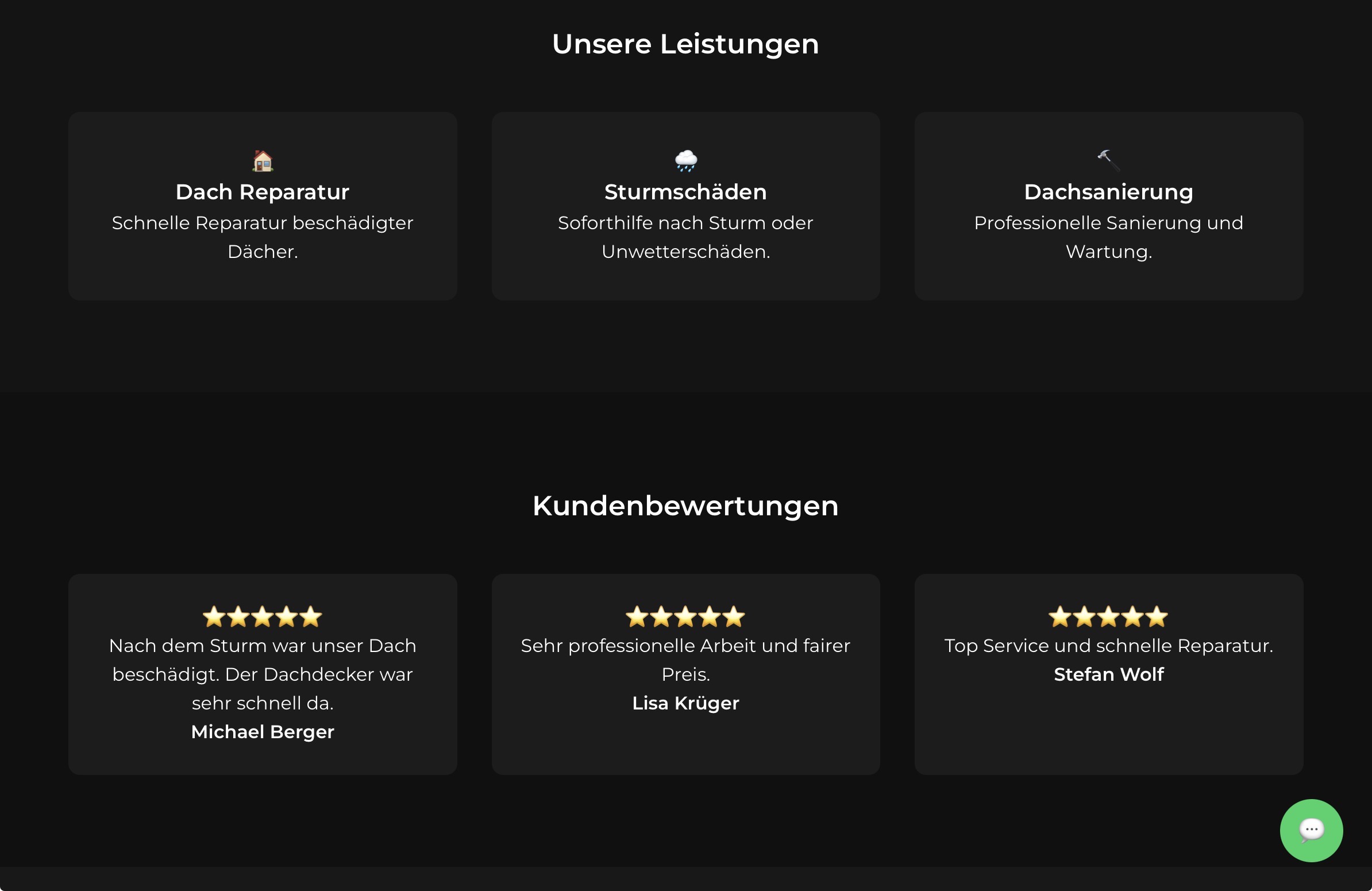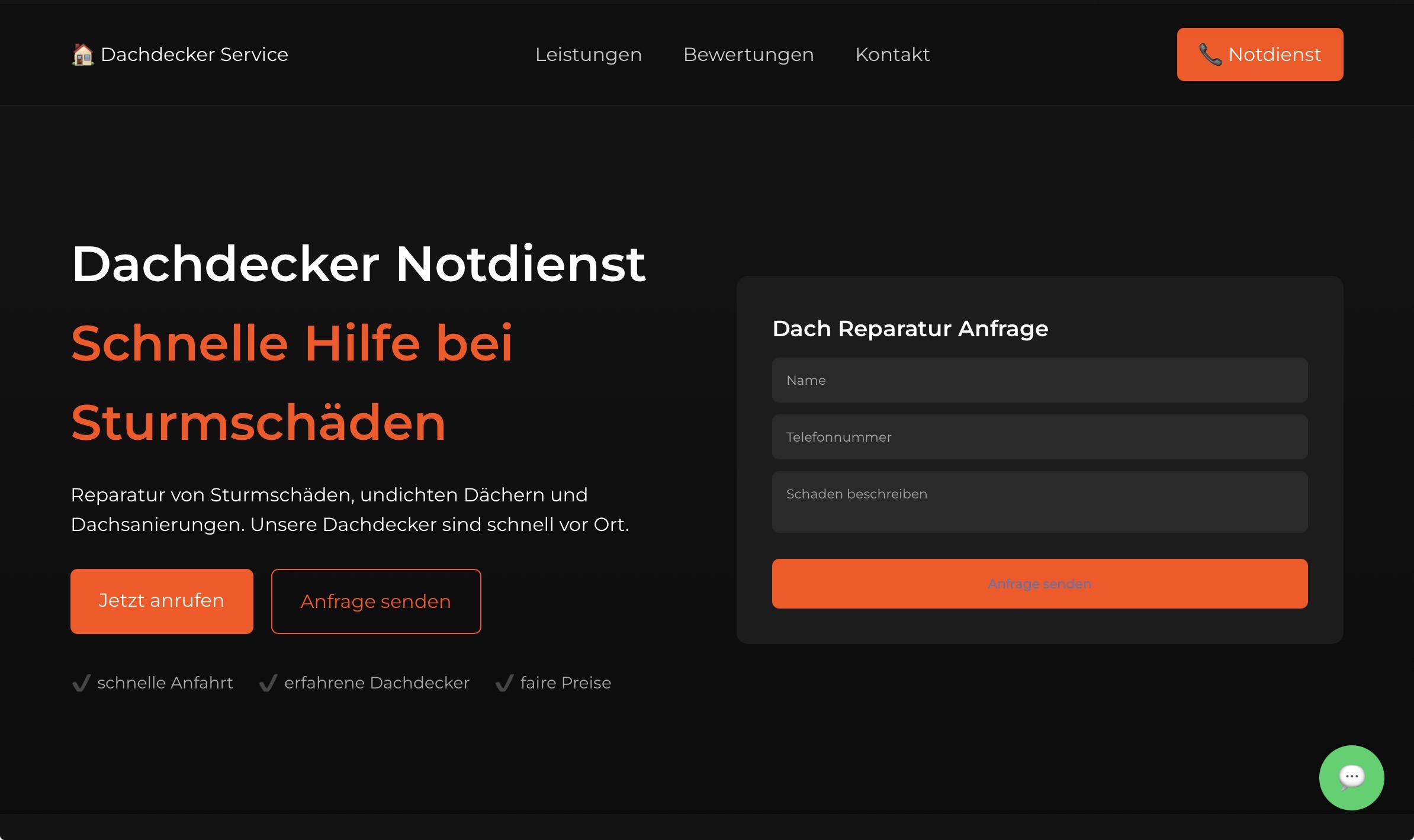 Professionelle Landingpage für Dachdecker und Handwerksbetriebe. Perfekt geeignet um neue Kunden über Google zu gewinnen.