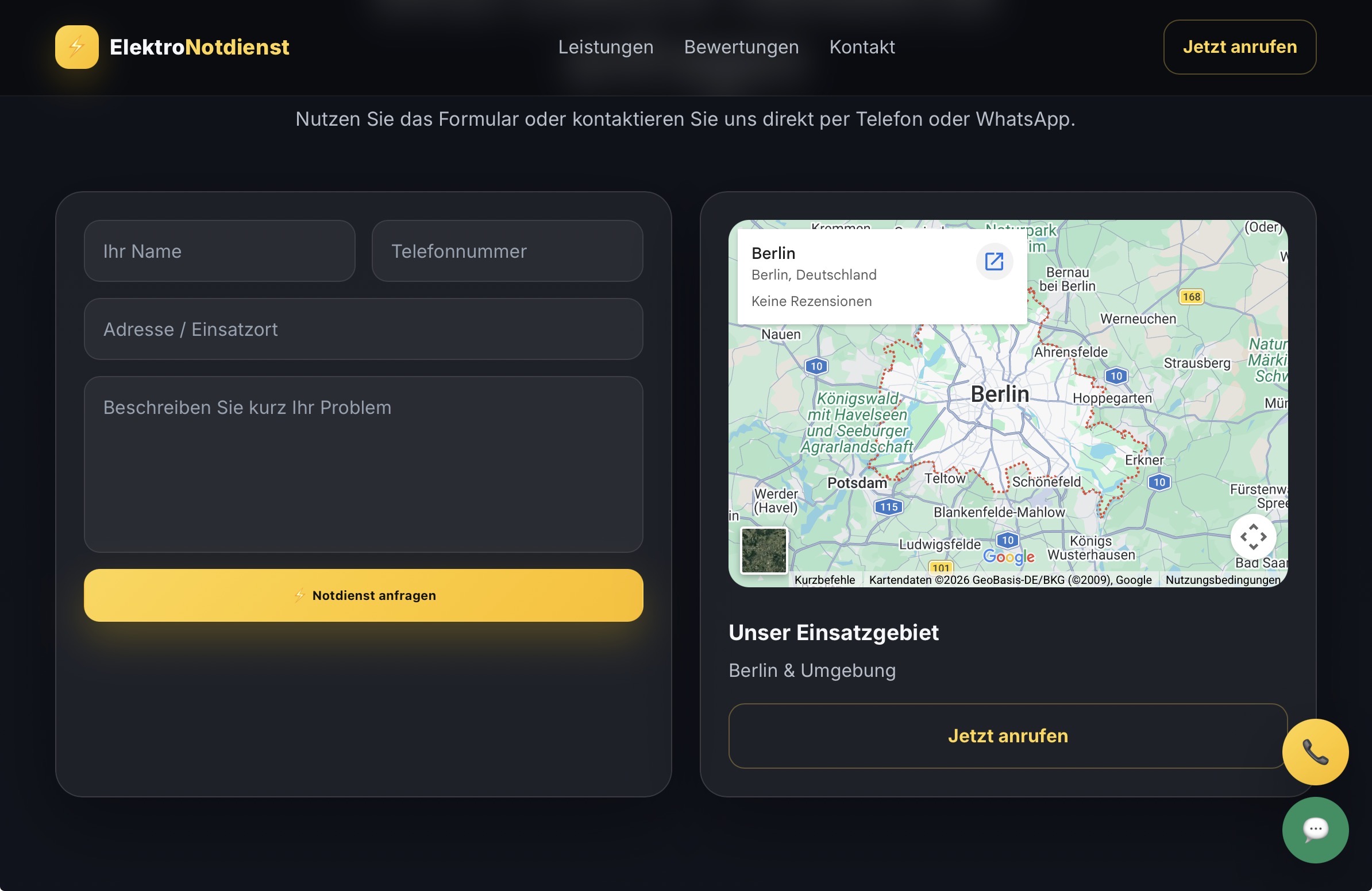 Standort des Elektrikerbetriebs direkt auf der Website sichtbar.
